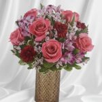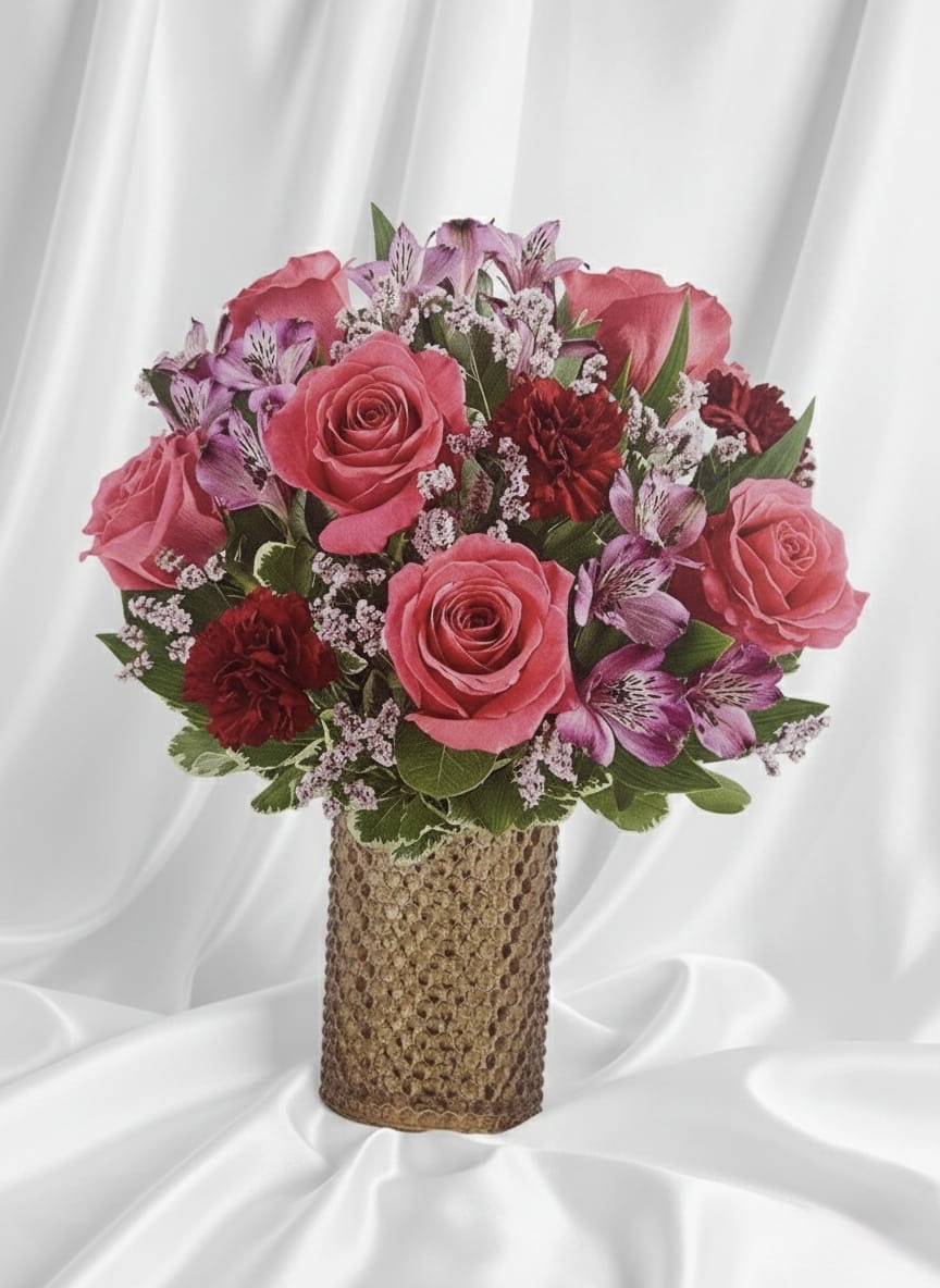 Garden Alstroemeria Lyli with pink roses and red carnations G1-42072