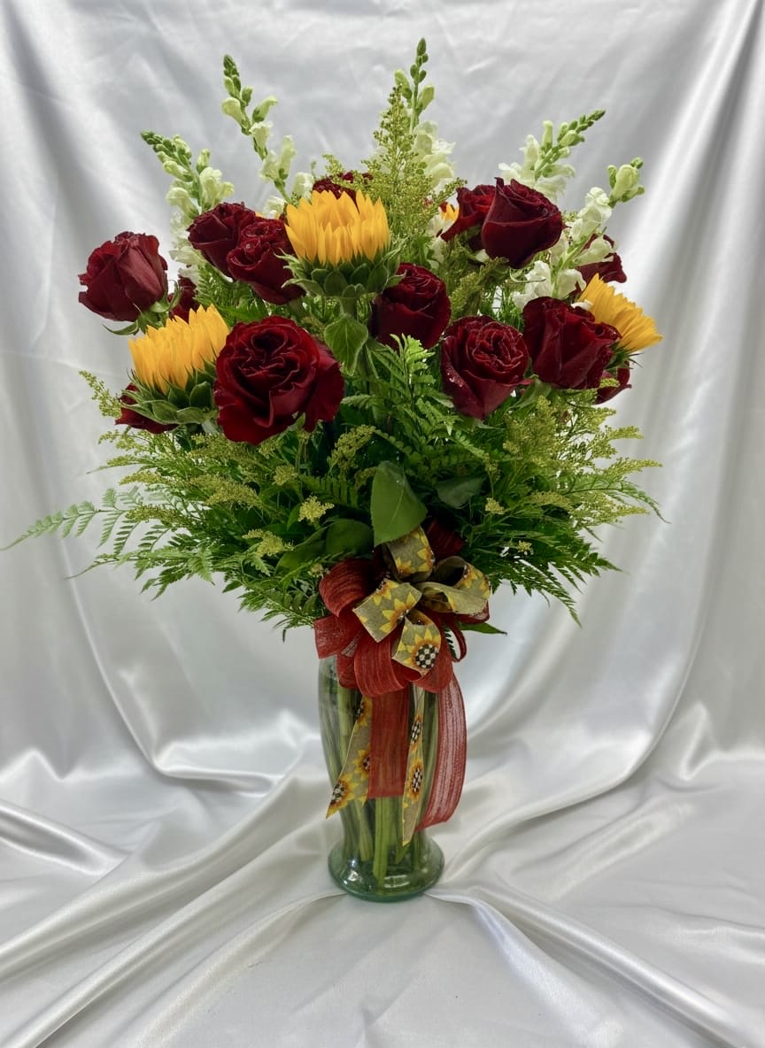 Sunny Love red roses & sunflowers G1-42041RS