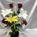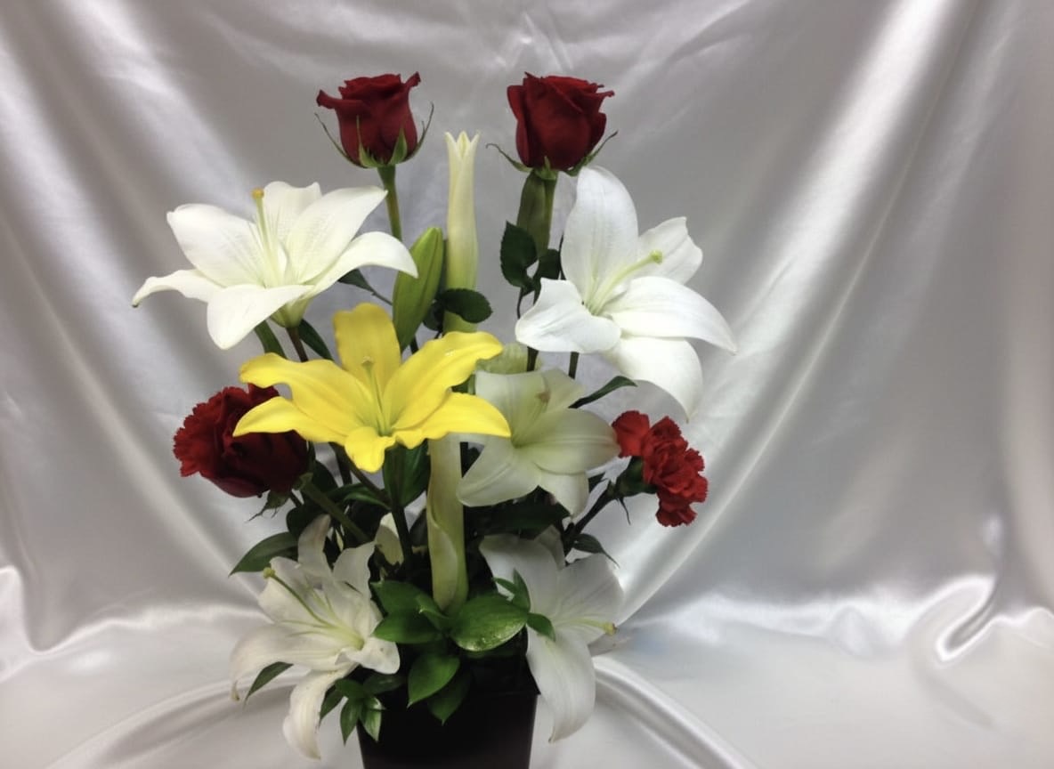 Be the first to review “White yellow lily red roses and carnations G1-42077”